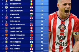 英超各队为国征战次数最多球员:扎卡141场居首,萨拉赫106场第5
