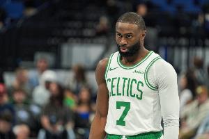 上半场比赛,杰伦·布朗出战16分35秒,投篮11中5,罚球2中2,得到12分1篮板1助攻。