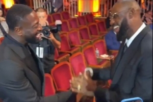 NBA官方晒出视频,詹姆斯出现在今日名人堂入选仪式现场,并与好兄弟韦德互相致意。