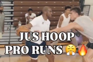视频中,保罗、斯库特-亨德森、特伦斯-曼恩、扎伊尔-威廉姆斯、加尔扎、小乔丹等球员分两队进行对抗。