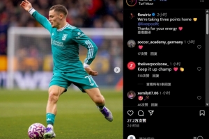 赛后利物浦中场维尔茨更新社媒,晒出此役比赛照片,并写道:我们带着三分回家,感谢你们带来的能量。