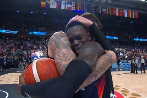 比赛结束后,德国队核心控卫施罗德和队友紧紧相拥,喜极而泣。