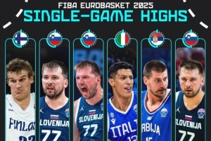 体育资讯9月17日讯 今天,男篮欧锦赛官推晒出了本届赛事的单场得分榜。具体为: