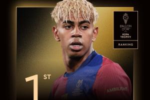 体育资讯9月23日讯 2025年金球奖颁奖典礼今日进行,18岁的西班牙前锋亚马尔获得科帕奖,连续两年获得该奖项,巴萨球员5年4获奖。