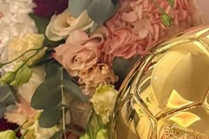 体育资讯09月23日讯 登贝莱荣膺2025年金球奖,他的妻子Rima Edbouche在INS上晒出一束鲜花和金球奖奖杯图。