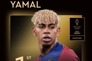 体育资讯9月25日讯 2025金球奖评选落幕,登贝莱荣获金球奖。亚马尔排名第二,同时蝉联科帕奖。西甲主席特巴斯将亚马尔无缘金球奖的原因“归咎于”年龄。