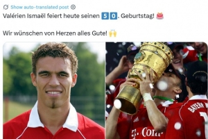 体育资讯9月28日讯 今天是前法国国脚瓦勒里安-伊斯梅尔50岁生日,拜仁官推也晒出其昔日身披球队战袍夺冠照片为其送上祝福。