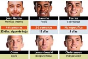 这使巴萨近期不堪重负的伤员名单再添一位。目前,巴萨多名球员仍处于伤缺状态:特尔施特根、加维、拉菲尼亚、霍安-加西亚、奥尔莫、莱万多夫斯基、克里斯滕森,如今佩德里也加入其中。