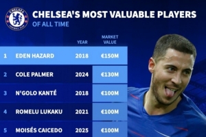 体育资讯10月30日讯 蓝军名宿阿扎尔已经入选英超名人堂,《转会市场》统计显示他仍然是切尔西队史德转身价最高球员。